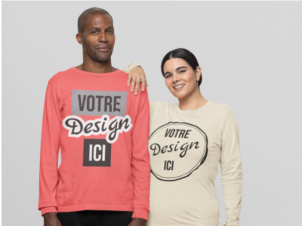 Soyez vous-même créateur de mode et mettez-vous au travail avec notre outil de conception en ligne. Commandez un T-shirt à manches longues personnalisé pour femmes pour les week-ends entre amies, un anniversaire ou un enterrement de vie de jeune fille. Vous cherchez quelque chose pour une sortie d'entreprise ou une fête de famille ? Le modèle à manches longues est un bon choix pour tous. Jetez un coup d'œil à nos T-shirts à manches longues pour hommes. Téléchargez une photo amusante, écrivez un beau texte ou choisissez parmi nos différents motifs. Et tout cela pour seulement CHF 13.90. Une bonne affaire !